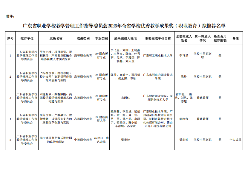 关于转发广东省职业学校教学管理工作指导委员会《关于2025年全省学校优秀教学成果奖(职业教育)拟推荐名单的公示》